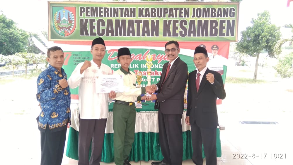 Piala diterima langsung oleh kepala madrasah M. Irfan Fauzi saat di pendopo kecamatan Kesamben. Disaksikan oleh ketua panitia dan perwakilan dari pemerintah Kecamatan Kesamben Rabu, 17 Agustus 2022.
